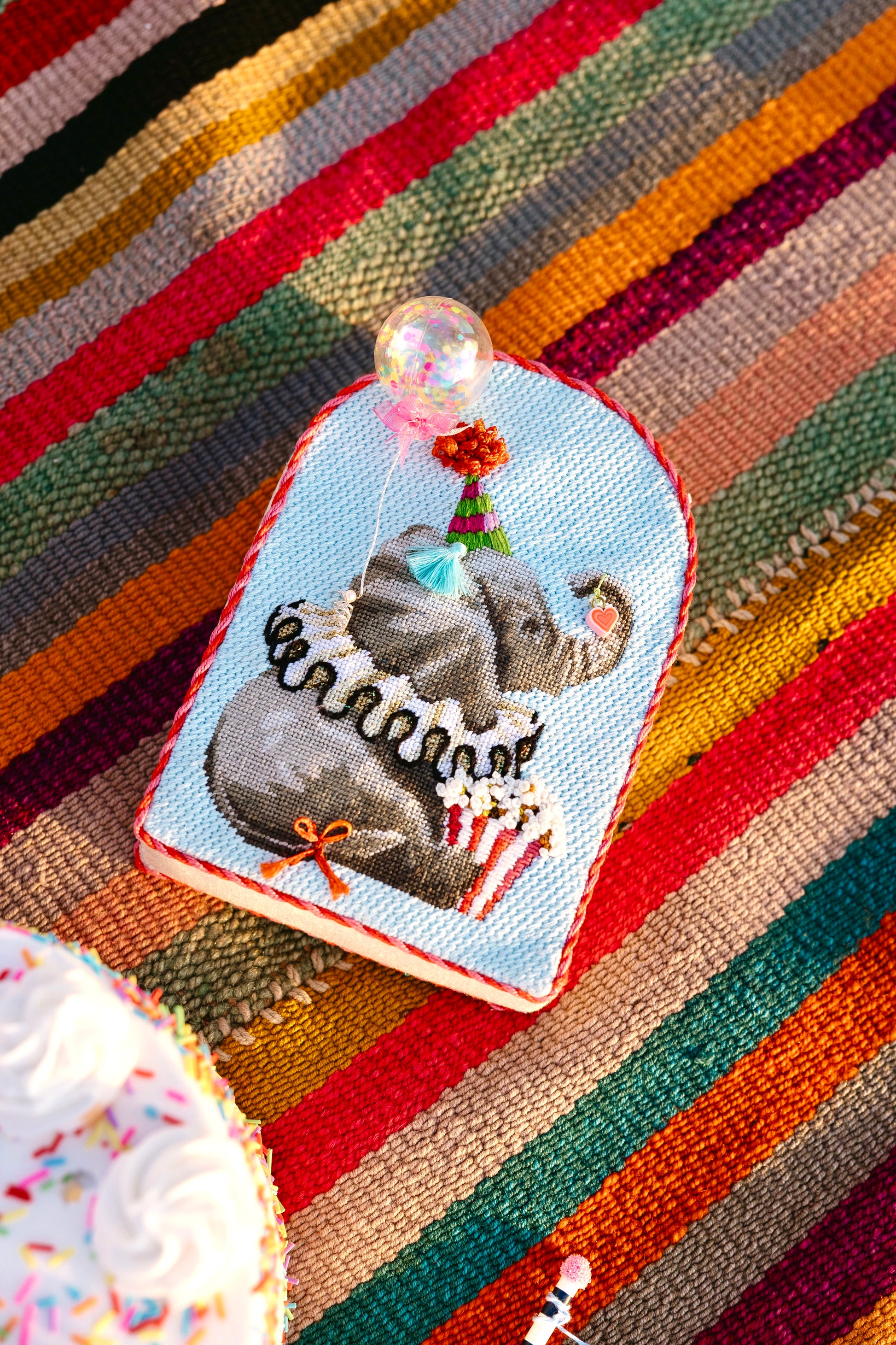 Add a whimsical pop of color and design to your birthday celebrations with this adorable handpainted needlepoint canvas by Marie Barber. Part of the new Fall 2025 Happy Birthday Collection, this design brings playful charm and cute details to your creative projects.