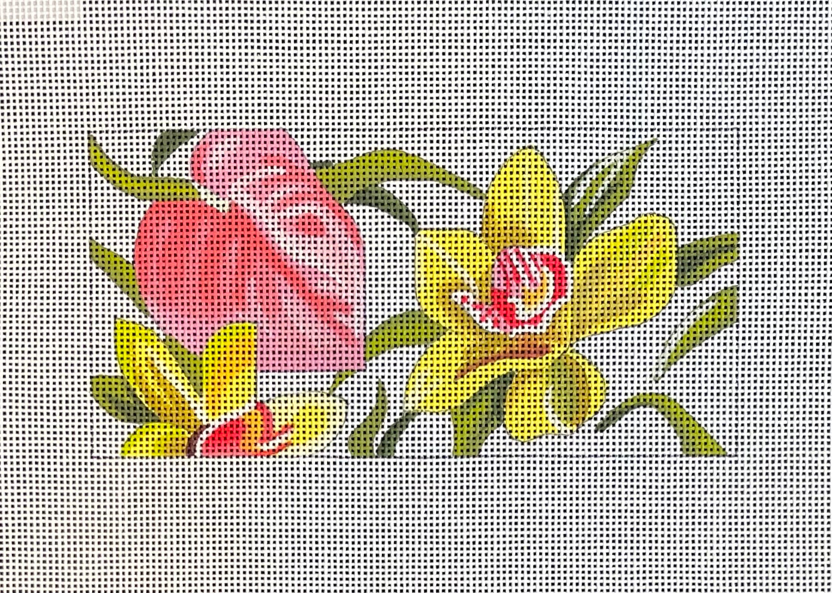 Old designs renewed in such a fabulous way! This beautiful hand-painted canvas is a 6x3 insert on 18M, designed by Marie Barber.