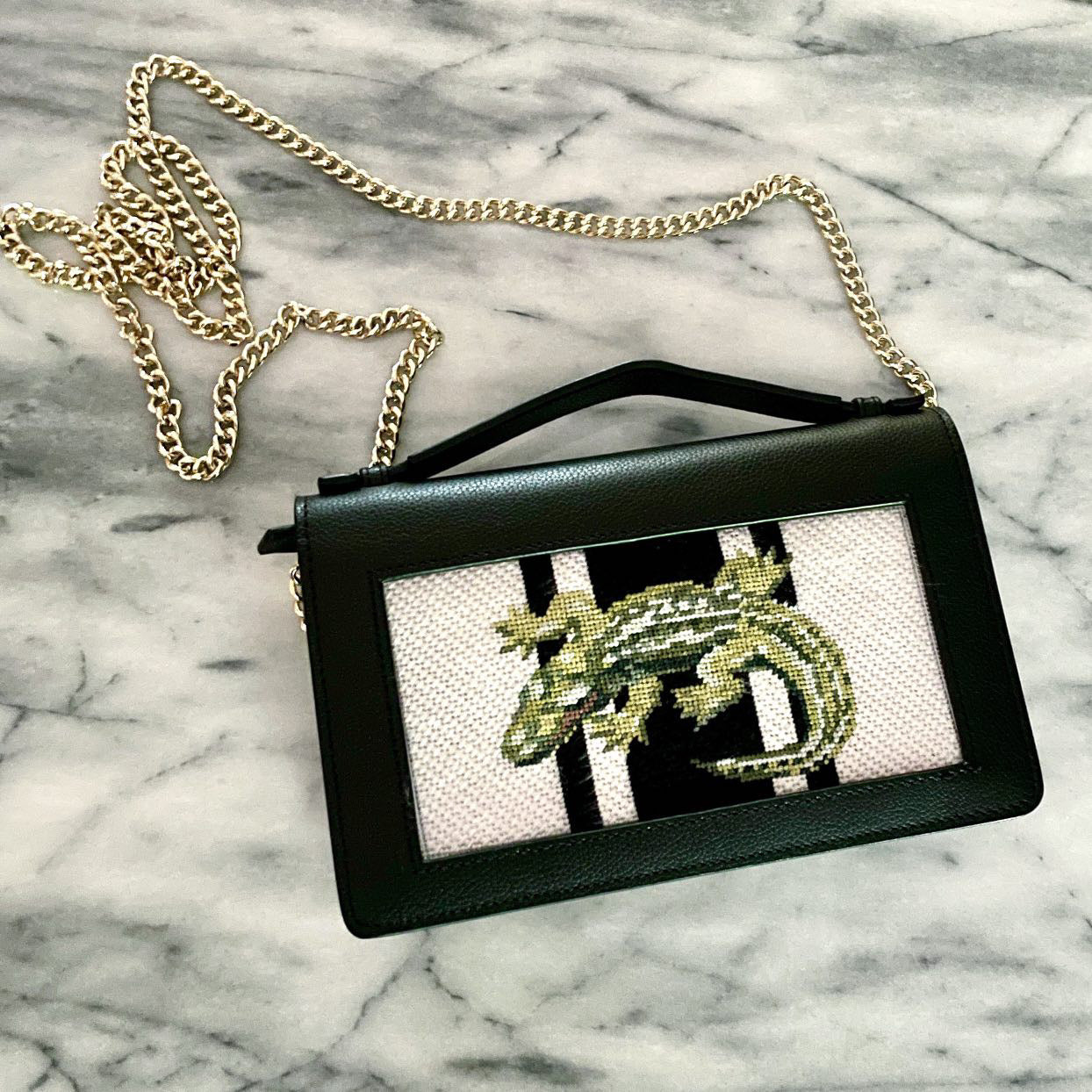 Old designs renewed in such a fabulous way! This beautiful hand-painted canvas is a 6x3 insert on 18M, designed by Marie Barber.