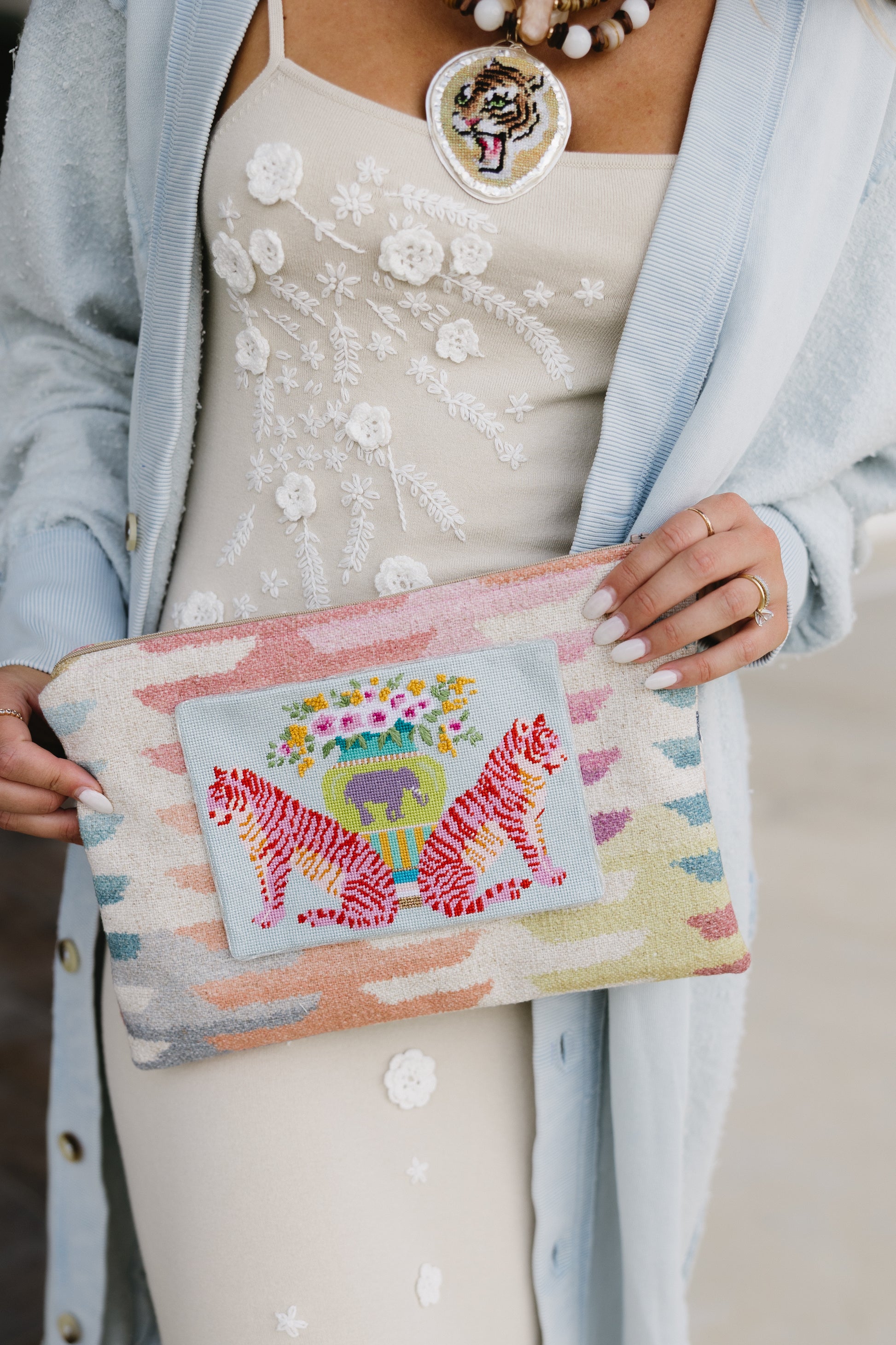 Experience the elevated artistry of Marie Barber with this new handpainted needlepoint canvas as part of the Fall 2025 Collection. This new design combines meticulous detail and timeless elegance, providing a sophisticated canvas for your creative needlework.