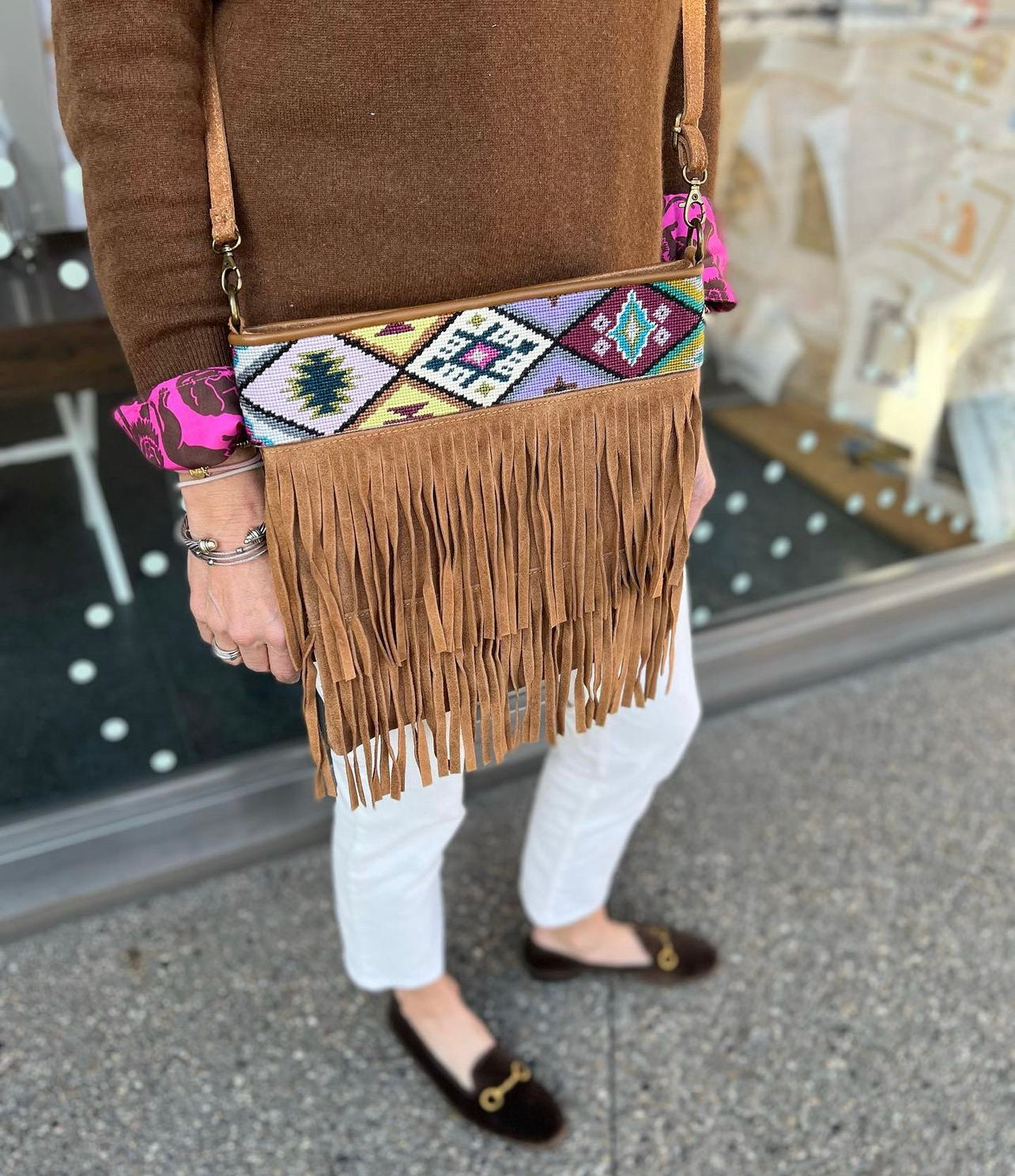 Crafted with intricate needlepoint details, this stylish design brings an elevated dose of sophistication to any look. Combining aesthetic beauty with luxurious materials, it's the perfect way to add a hint of class.